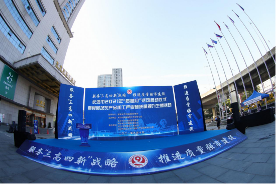 2021年9月10日上午,由湖南省市场监督管理局指导,长沙市质量强市工作领导小组主办,长沙市市场监督管理局、中共长沙市芙蓉区委员会、长沙市芙蓉区人民政府、长沙市食品及农产品加工产业链推进办公室承办的以“服务‘三高四新’战略,推进质量强省建设”为主题,长沙市2021年“质量月”活动启动仪式暨食品及农产品加工产业链质量提升主题活动在长沙市芙蓉区万家丽广场隆重举行。