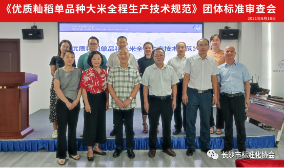 2021年9月18日下午,《优质籼稻单品种大米全程生产技术规范》团体标准审查会在长沙市人民东路芙蓉标准化小镇东湖壹号13栋标准化产业(长沙)创新中心顺利召开。